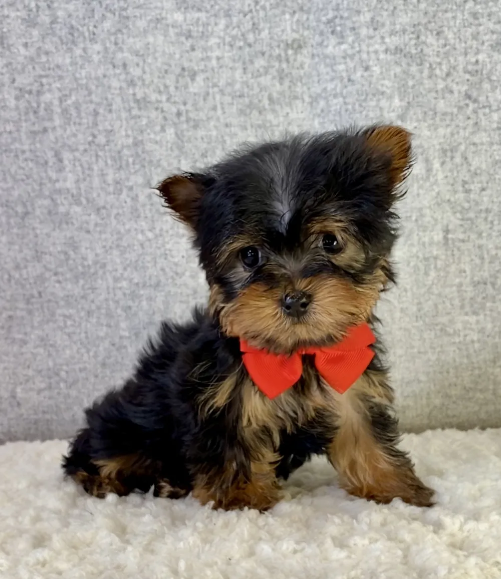 a Yorkshire Terrier puppy with a dapper red bow and an even bigger personality. With his bright eyes and soft fur, he’s the perfect little gent to cozy up with as winter winds down and spring adventures begin. Stanley’s ready to charm his way into your heart and home!